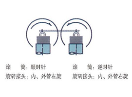 ![]() 3、螺纹连接的旋转接头在安装时,应注意内外管的螺纹旋向是否与滚筒的旋转方向对应,且内外管的螺纹旋向也应一致。 |