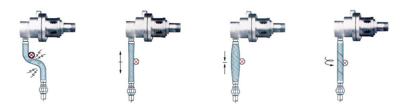 8、常见金属软管不正确配置安装的范例如下四图所示